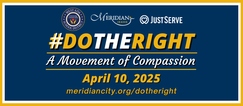 To celebrate our campaign of kindness, the West Ada Community Collaborative, JustServe, and the City of Meridian have teamed up to host a Do the Right Fair Community Event on Thursday, April 10, 2025, from 5:30-7:30 PM, at Meridian Middle School (1507 8th St NW, Meridian, ID 83642 »).