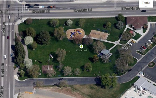 Storey Park, Meridian’s oldest City park established in 1980 and named after former Meridian Mayor Don Storey, is 14 acres in size and located at the intersection of Main Street and Franklin Road near downtown Meridian, the Meridian Dairy Barns, and the Meridian Speedway. In addition to being a City park, Storey Park is home to the Meridian Pool, the Meridian Chamber of Commerce office building (a non-City entity), and the Storey Bark Park off-leash dog park.